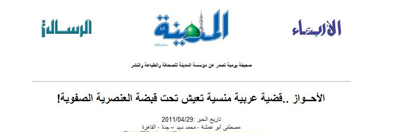 الاحتلال الفارسي و جرائمه في الأحواز خاصة أحكام الإعدام الأخيرة لذلك تدعو كافة ابنائها ومناصري القضية الأحوازية من الأشقاء العرب والقوميات الغير الفارسية فى جغرافية ايران و المتعاطفين مع القضية الاحوازية المشاركة فى المظاهرة التى ستقام امام البرلمان البريطاني و ذلك فى يوم الاحد المصادف 2011/05/15 من الساعة الثانية الى الرابعة عصرأ و ذلك احتجاجا علي سياسات وجرائم السلطات الايرانية ضد أبناء شعبنا العربي الأحوازي و مناشدة دول العالم وخاصا المملكة المتحدة والمؤسسات الإنسانية كافة بالتحرك من ردع سياسات ايران الغير انسانية و الوحشية و ايقاف الإعدامات و الاعتقالات المستمرة التى تقوم بها السلطات الايرانية بحق ابناء الاحواز .