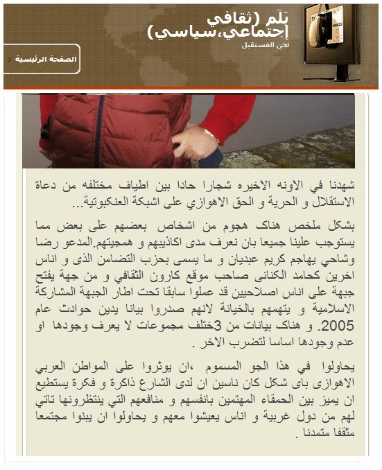 موقع احوازنا- هذه الرسالة موجهة الى كافة منظمات والحركات الأحوازية التي تعمل في إطار استرجاع الحق الشرعي المسلوب من كل أبناءها وهو حق السيادة على ارضهم، حق تقرير مصيرهم بأنفسهم وإعادة وطنهم المغتصب من ايدي الاحتلال الغاشم.