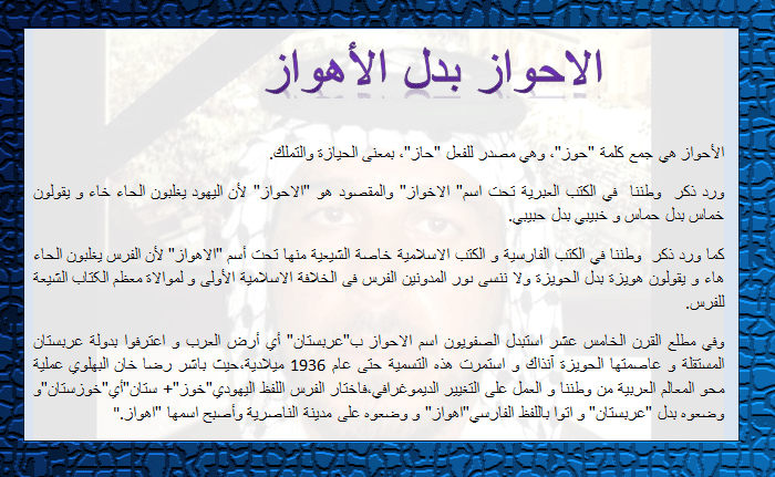 وإذن النشاط الثقافي الذي بات على يد النخبة الاحوازية اليوم، هو بمثابة حرق الأفيون المخدر واستيقاظ المجتمع من سبات التخدير الذي يجعل الإنسان تابعاً لا متبعاً، ضعيفاً لا قوياً، أسيراً لا حراً، متخلفاً لا نامياً.