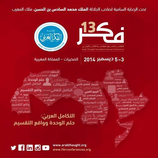 أكدت “مؤسسة الفكر العربي”، التي تتخذ من بيروت مقرا لها، أن نخبة من السياسيين والمفكرين العرب سيشاركون في مؤتمرها ال13 (فكر 13) الذي تحتضنه مدينة الصخيرات ما بين 3 و5 دجنبر المقبل تحت شعار “التكامل العربي: حلم الوحدة وواقع التقسيم”.