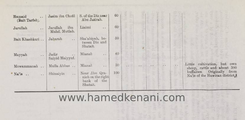 لندن- موقع كارون الثقافي- حامد الكناني- هذه ترجمة لجزء من تقرير بريطاني مطول حول مكونات الشعب العربي الأحوازي في عربستان و يعود تاريخه إلى عام ١٩٢٤، اللغة المستخدمة في التقرير: الإنجليزية. والنسخة الأصلية من التقرير محفوظة في المكتبة البريطانية: أوراق خاصة تحت عنوان سجلات من مكتب الهند. هذا التقرير فيه ارقام ومعلومات هامة واسماء لشخصيات كانت تمثل العشائر والقبائل العربية في عربستان الأحواز.