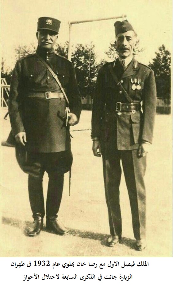 3- الصورة تجمع الملك فيصل الأول ملك العراق مو رضا خان البهلوي عام 1932 في طهران.