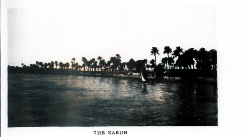 ثم عدنا إلى المحمرة، التي غادرناها أخيراً في السابع عشر من فبراير/شباط، مبحرين على طول نهر الكارون إلى الأحواز. يمر خط أنابيب النفط الأنجلو-فارسي من الحقول إلى عبادان على طول هذا الطريق. عندما تم وضعه لأول مرة فوق الصحراء، كان إغراء إطلاق النار عليه، ونفث الزيت الناتج، أكبر من أن يتحمله العربي. كان الأمر ممتعًا للغاية. قيل لي إن الصعوبة تم التغلب عليها من خلال جعل الشيوخ مساهمين، وبالتالي جعلهم مهتمين ماديًا بحراسة الخط.