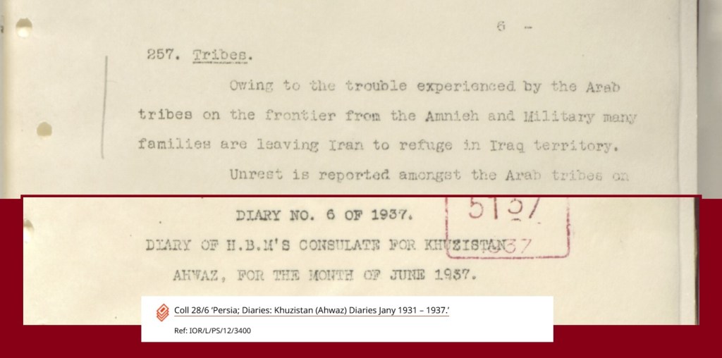 – Diary of H.B.M’s Consulate for Khuzistan, June 1937, IOR/L/PS/12/3400