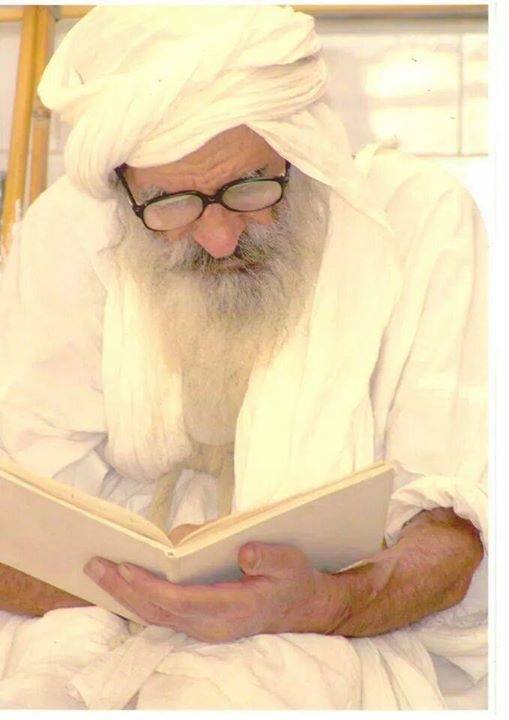 ظهر الشيخ عبد الله في المدخل، مبتسمًا ابتسامة خفيفة وعيناه الزرقاوين متلألئتان. كان عمره حوالي خمسة وتسعين عامًا، منحنيًا تقريبًا بنفس الدرجة، ملتحيًا أبيض، يرتدي كاملًا الأبيض مع نعال قماشية بيضاء (يجب ألا يلمسه أي جلد حيواني). كان يعيش منفصلًا عن عائلته ويطهو طعامه بنفسه. ابتسمنا وانحنينا، لكن لم نمد أيدينا له.