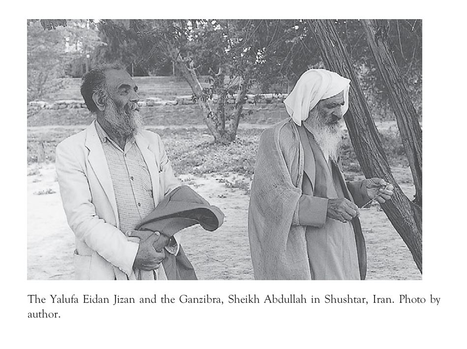 دخلنا الفناء المغلق لمنزل الشيخ عبد الله الخفاجي، زعيم المندائيين في إيران. رأيت أبقارًا مربوطة على جانب واحد. جاءت امرأة جميلة جدًا، بلا حجاب، ذات عظام خد عالية، وعيون زرقاء، وشعر أشقر داكن، ابتسمت لنا. أسرت هناء بجمالها وأثنت عليها، وضحكت وصفقت بيديها. قادنا شاب، أحد أحفاد الشيخ، إلى الطابق العلوي. حذرنا ألا نلمس الشيخ، الذي يجب أن يظل طاهرًا. جلب لنا أكواب كولا وجلستنا ننتظر في الغرفة العليا.