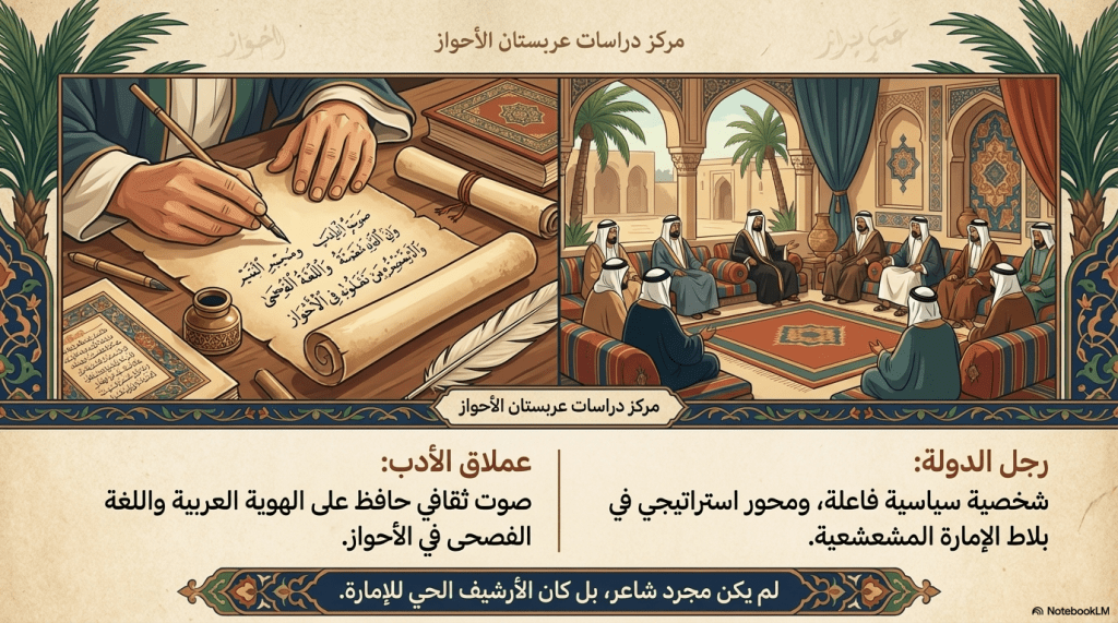 في البدء، لا يظهر النص بوصفه مادةً تاريخيةً فحسب، بل كطبقاتٍ من الذاكرة تتراكم فوق بعضها، حتى إذا ما اقترب القارئ منها، وجد نفسه لا يقرأ عن شاعرٍ أو دولة، بل يغوص في نسيجٍ كاملٍ من اللغة والسلطة والروح. هناك، في تخوم الحويزة، حيث الماء يحرس اليابسة، وحيث التاريخ لا يُكتب بالحبر وحده بل بالجغرافيا أيضاً، تبدأ الحكاية.