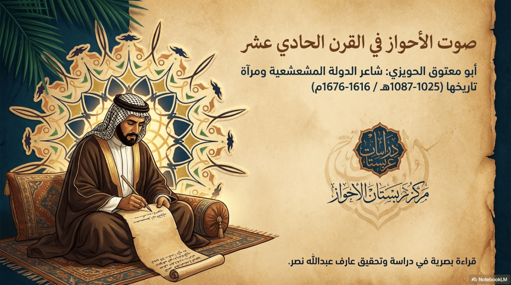 في هذا الفضاء، حيث تتجاور العمامة مع السيف، ويجلس العالم إلى جوار الأمير، وُلدت الحاجة إلى صوتٍ يُجسّد هذا التوازن. لم يكن أي صوتٍ كافياً؛ كان لا بد من شاعرٍ يحمل اللغة كما يحمل العارف سرّه. وهنا يظهر أبو معتوق الحويزي، لا بوصفه شاعراً عادياً، بل كظاهرةٍ لغويةٍ وفكرية، كأنما اجتمع فيه ما تفرّق في غيره: صرامة النحو، وحرية الشعر، وشفافية العرفان.
