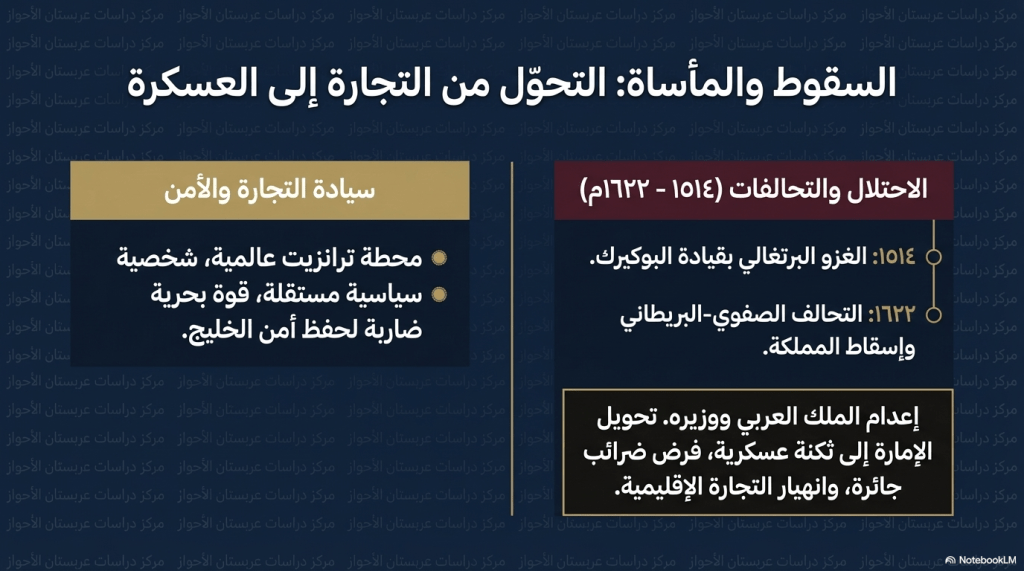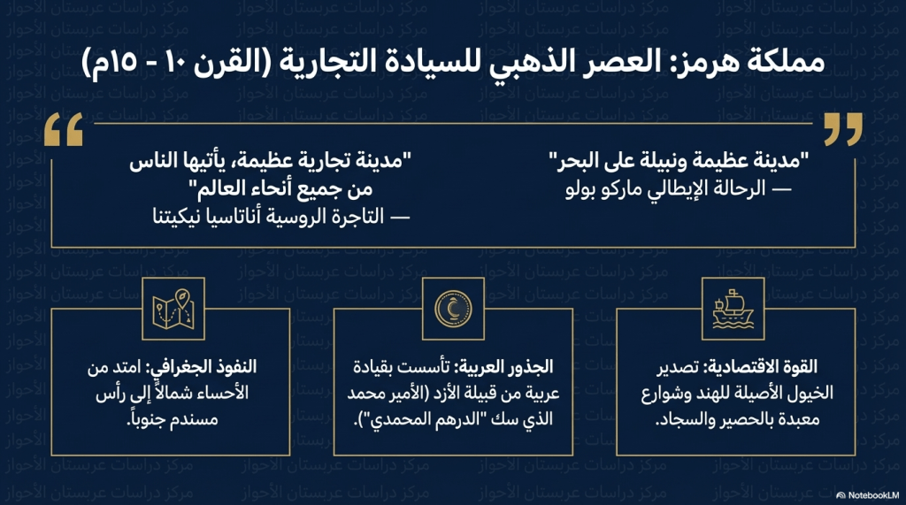 تستعرض هذه الأوراق تاريخ مملكة هرمز العربية التي مثلت مركزاً تجارياً استراتيجياً في الخليج العربي منذ القرن العاشر الميلادي، مسلطاً الضوء على سيادتها البحرية المستقلة وثرواتها الطائلة قبل وقوعها تحت الاحتلال البرتغالي ثم الصفوي. ويوضح المصدر الجذور العربية لهذه المملكة وازدهارها كميناء عالمي يربط الشرق بالغرب.