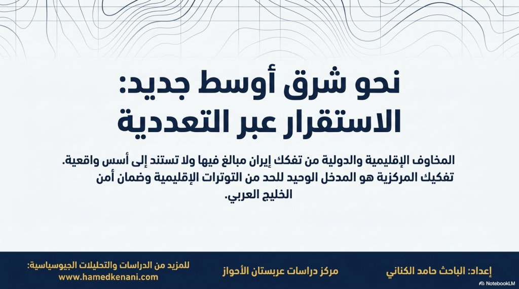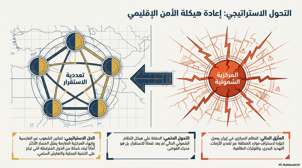 وفي المحصلة، فإن إنهاء حالة المركزية الصارمة سواء عبر إصلاح بنيوي للنظام أو عبر تفكك الدولة يُنظر إليه كمدخل محتمل للحد من التوترات الداخلية والإقليمية، وفتح المجال أمام شعوب المنطقة للتركيز على البناء والتنمية والتقدم.