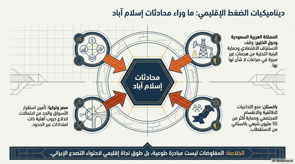 مركز دراسات عربستان الأحواز- حامد الكناني- بعيدًا عن الضجة الإعلامية والتغطيات المباشرة المتواصلة لأحداث المفاوضات الجارية—والمتعثرة أحيانًا—بين الولايات المتحدة من جهة، وما تبقى من القيادة الإيرانية من جهة أخرى، في العاصمة الباكستانية إسلام آباد، يتضح أن هذه المفاوضات لم تنشأ بمبادرة خالصة من الطرفين. بل تشير المعطيات، كما أُعلن وسُرّب مرارًا، إلى أنها تجري برعاية مشتركة من تركيا والسعودية وباكستان ومصر.
