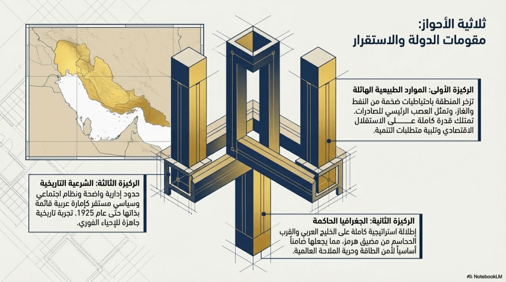 وتجدر الإشارة إلى أن الأحواز، بحكم كونها إمارة عربية شبه مستقلة ذات حدود إدارية واضحة ونظام اجتماعي مستقر حتى عام 1925، إضافة إلى ما تزخر به من احتياطيات كبيرة من النفط والغاز، والتي تمثل نسبة كبيرة من صادرات إيران الحالية، قد تكون أكثر المناطق قابلية للاستقرار مقارنة بغيرها ضمن الجغرافيا الإيرانية.