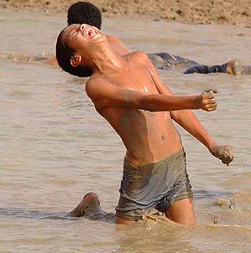 – هيا يا ولد، قدر ماء واحد لا يكفيك ولا اثنان! أنت ذاهب إلى المدرسة غداً ويجب أن تتنظف تماماً،