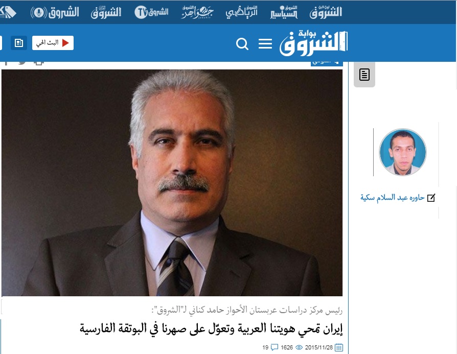 رئيس مركز دراسات عربستان الأحواز حامد كناني لـ”الشروق”: إيران تمحي هويتنا العربية وتعوّل على صهرنا في البوتقة الفارسية