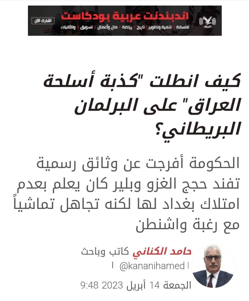 لندن- صحيفة اندبندنت عربية- حامد الكناني- الحكومة أفرجت عن وثائق رسمية تفند حجج الغزو وبلير كان يعلم بعدم امتلاك بغداد لها لكنه تجاهل تماشياً مع رغبة واشنطن