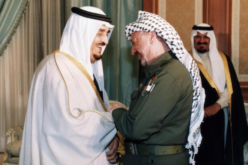 الملك فهد في حديث مع ياسر عرفات ويبدو الأمير سلطان يشاهد (غيتي)