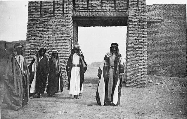 Khamisiyah [Tribesmen, possibly including Shaikh of Khamisiyah and Shaikh Hamud of the Dhafir in front of town1916